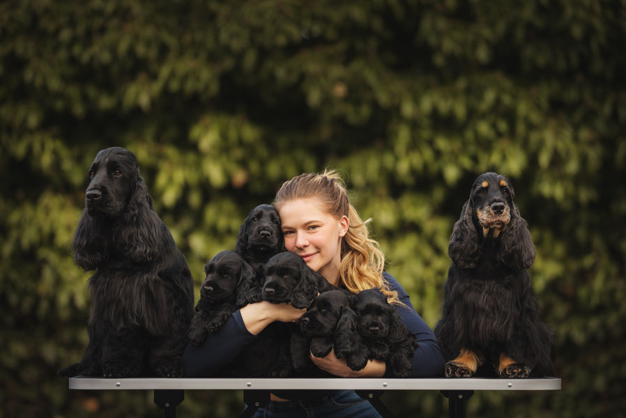 By dopełnić naszą rodzinę i będąc już pewną tego, że chcę iść drogą kynologii, na początku stycznia 2020r pojechaliśmy odebrać z hodowli Perfekt Partner (hod. Katarzyna Piechocka) naszą najmłodszą i przy okazji najbardziej zwariowaną cockerkę Różę (zwaną też Rumbą, jako że zjada wszystko jak odkurzacz). Od tego czasu każdy dzień poświęcam na prace z moimi wspaniałymi dziewczynami, naukę o rasie, analizowanie rodowodów, linii hodowlanych, a także na rozmowy z bardziej doświadczonymi.
